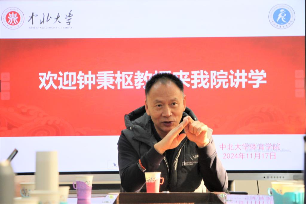讲座伊始,吴剑院长介绍了钟秉枢教授的基本情况,并对其到来表示热烈欢迎。钟秉枢教授从科研的切入点、科研的学科交叉等方面进行了指导。首先,他指出科研应找到合适的切入点,我院科研可以从兵工骨干、专家、学生和三晋地域特色为载体,从而找到富有特色研究课题。其次,他从跨学科融合的角度,提出将我校部分优势学科与体育相结合的科研思路,并进行深入的讲解。最后,他着重指出跨学科培养人才的必要性,并提出学生可以由不同领域专家担任导师的模式。