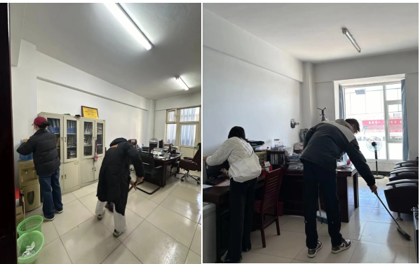 中午12:10同学们准时到达院楼一层集合,此次活动一共分为五个小组,每个小组各自负责一部分区域,领取所需工具后大家便分工有序全情投入劳动,对学院的桌面、仪器、储物柜等进行擦拭,拂去展板上的灰尘,将学院的地板擦洗的一尘不染,并对垃圾进行整理投放。在劳动中,大家团结协作,发扬不怕脏不怕累的优良作风,积极主动地净化每个角落。经过辛勤地劳作,实验室、多媒体教室、资料室、会客厅和学院全部走廊楼梯等被打扫得焕然一新十分干净,为学院教职工和学生营造了整洁舒适的工作学习环境。