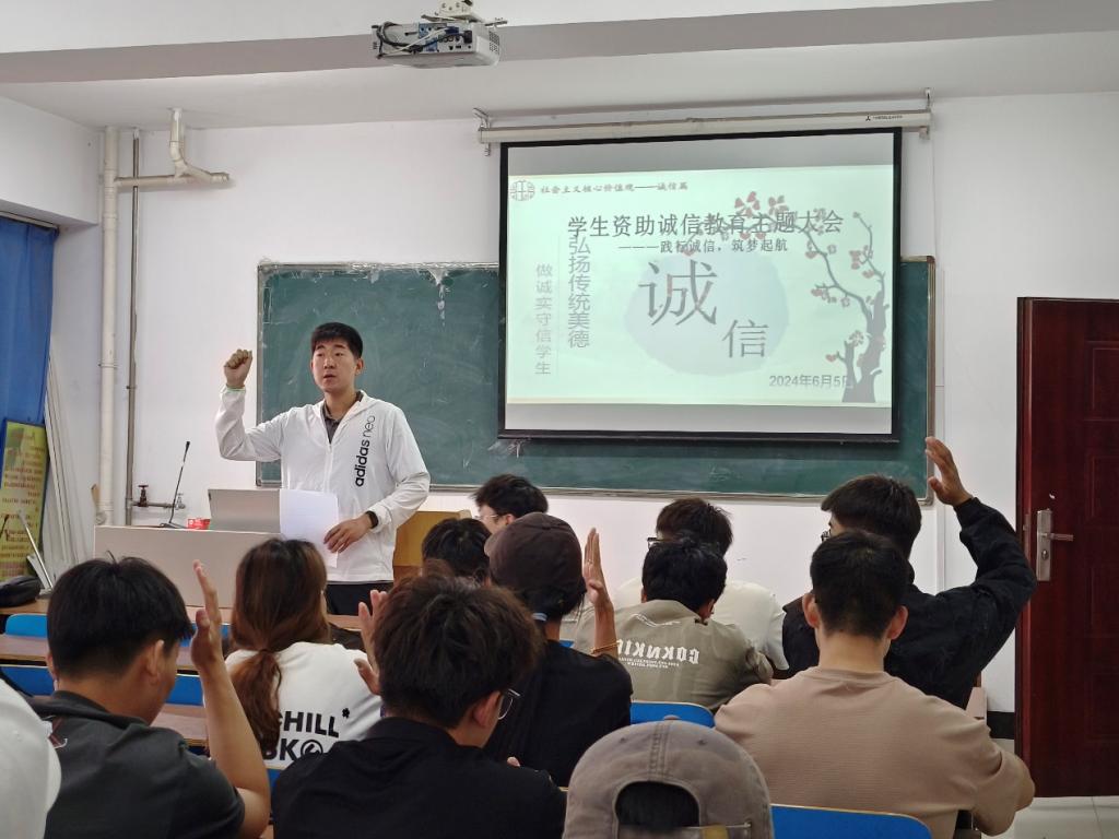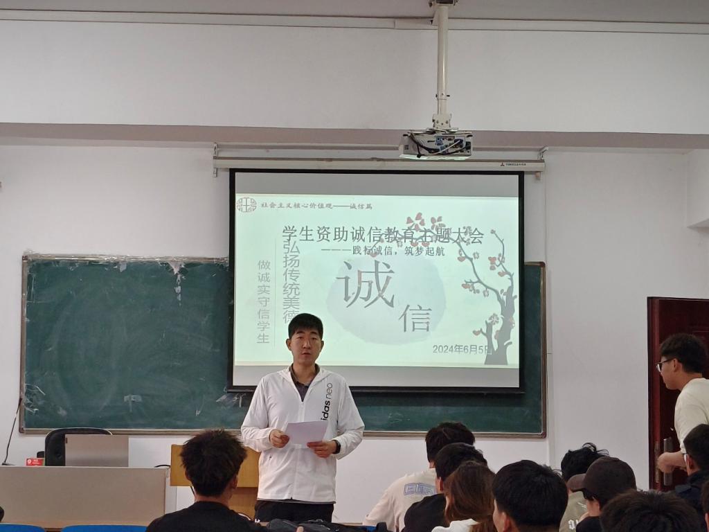 6月5日下午,我院在院楼一层多媒体教室举办以“践行诚信,筑梦起航”为主题的学生资助诚信教育大会。由我院负责李佳怿老师主持。