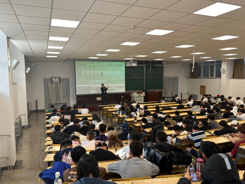 于07101h召开学风建设大会。会议由院党委副书记贾鹏主讲,全体在校学生参加。