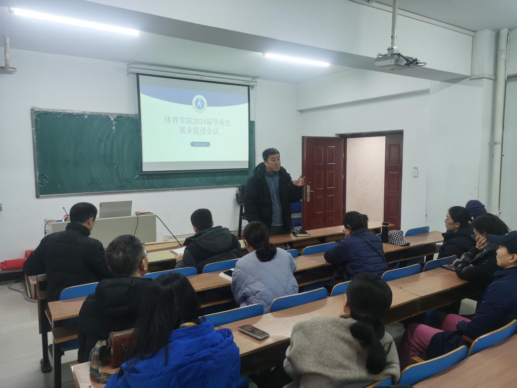 于院楼一层召开了2024届毕业生就业促进会议。学院领导、各科室主任、系部主任、全体专业课教师、专项课教师、教练员、毕业生论文导师、班主任和辅导员等参加了本次会议。