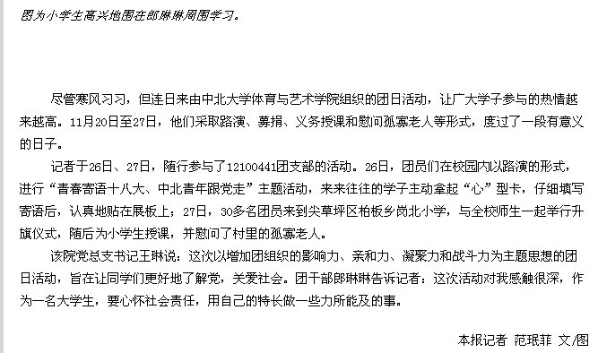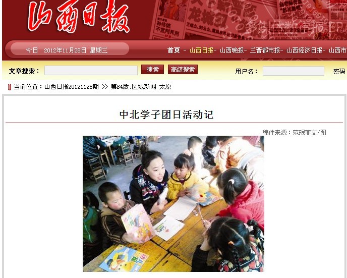山西日报跟踪报道我院12100441团支部主题团日活动