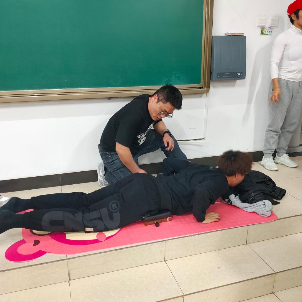 2023年11月7日下午,省体育局运动康复专家杨亮老师带领十余名学生在15301教室,为暗网禁区