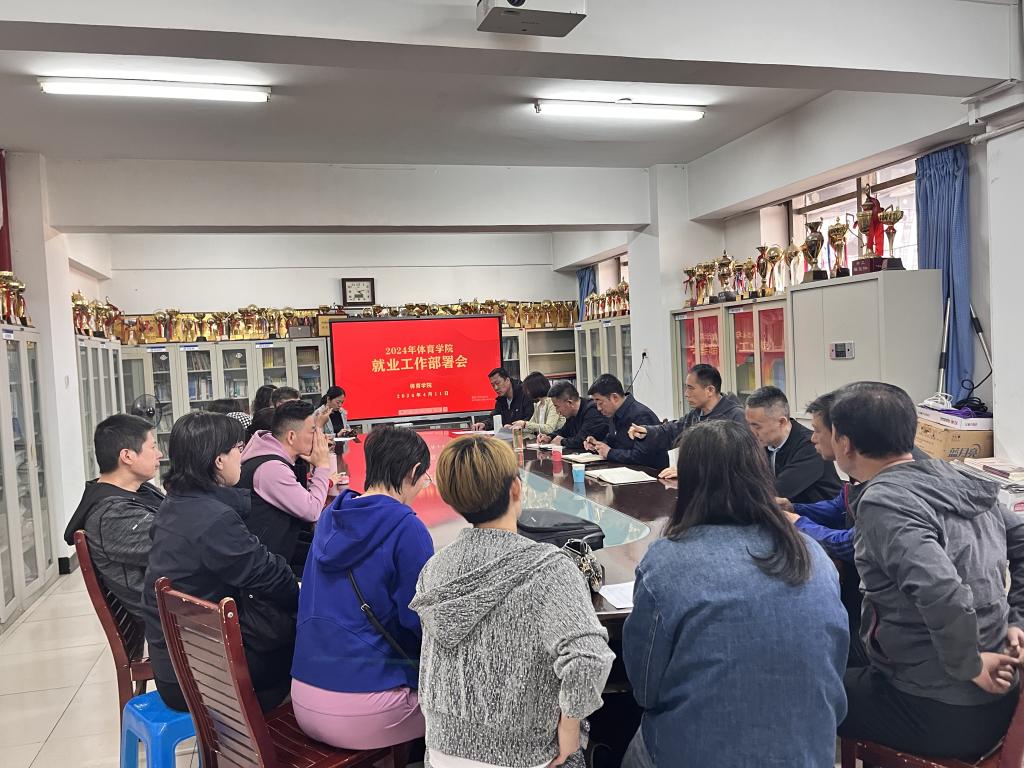 于院楼二层会议室召开了2024届毕业生第二次就业促进会议。学院领导、各科室主任、系部主任、专业课教师、专项课教师、教练员、毕业生论文导师、班主任和辅导员等参加了本次会议。