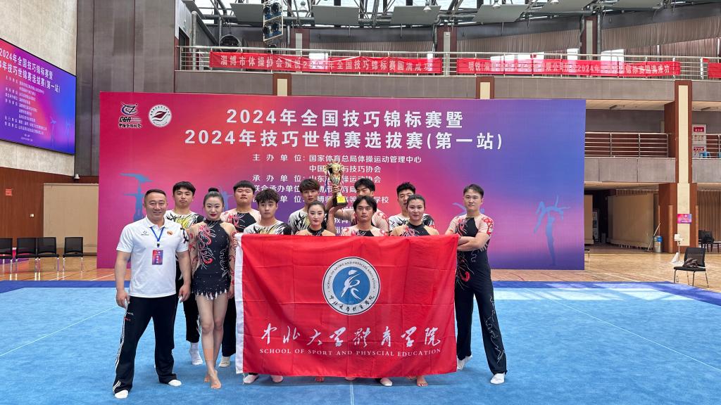 技巧队学生在比赛中努力拼搏,最终荣获青年组大集体亚军、混合四人季军、混合三人季军的优异成绩。