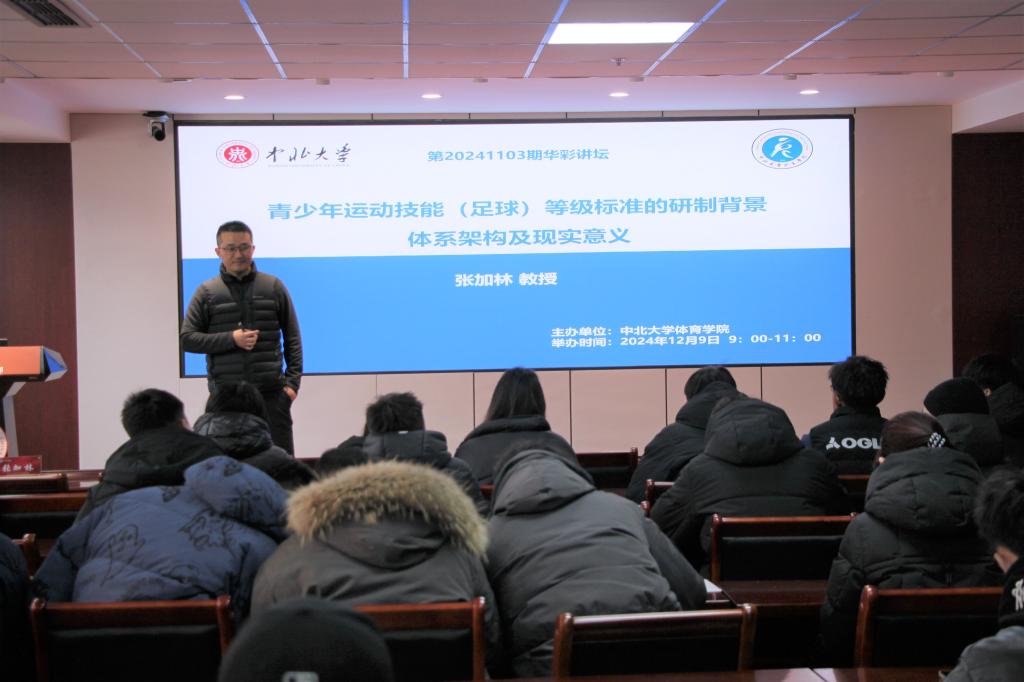 第20241103期华彩讲坛于11号楼715教室开讲,由学院副院长贾谊教授主持,特邀福建师范大学教授、硕士生导师张加林讲授,主题为:青少年运动技能(足球)等级标准的研制背景、体系架构及现实意义,全院师生聆听了本次讲座。