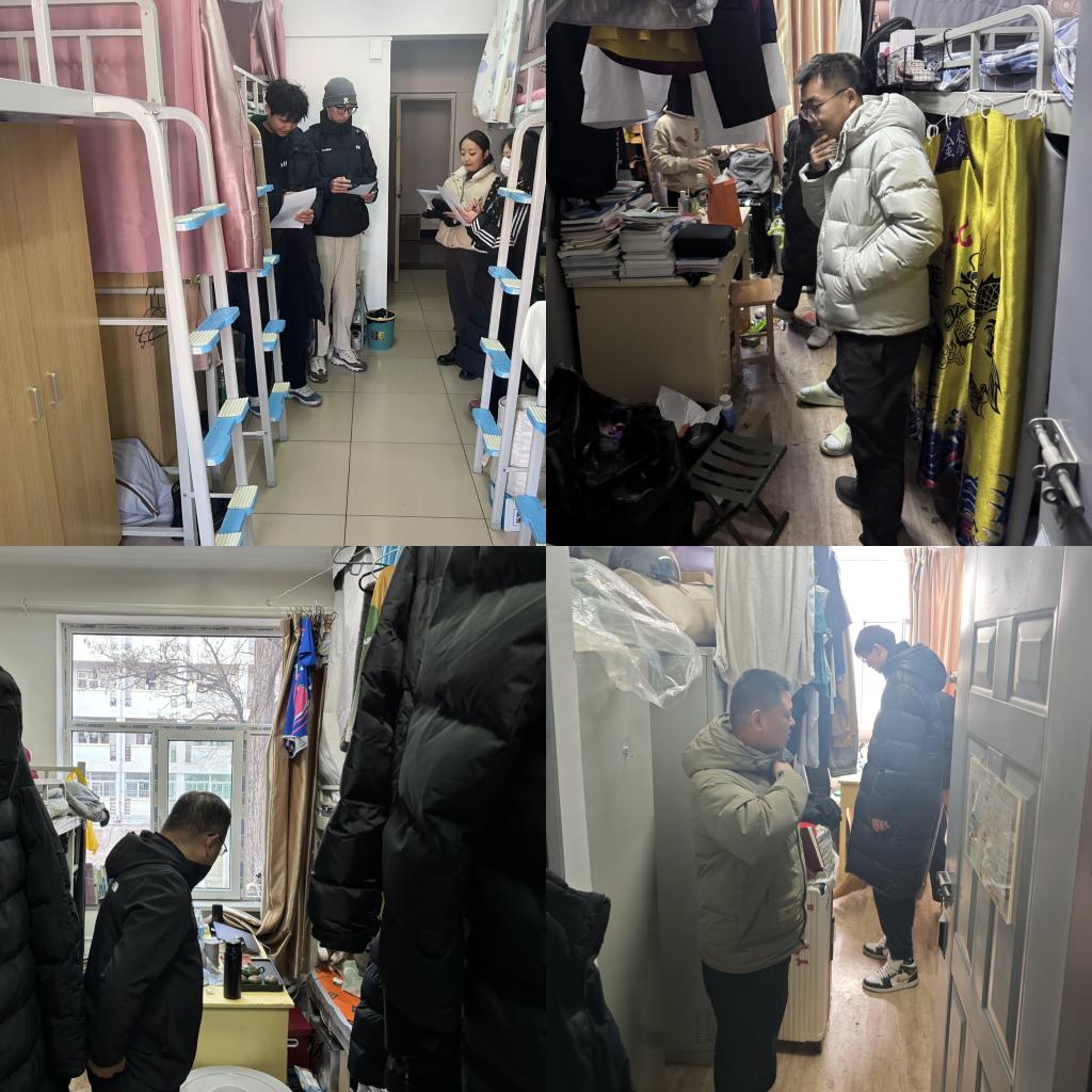 深入学生一线,开展宿舍安全卫生大检查。2月17日、2月21日,学院全体辅导员、班主任深入学生宿舍,开展安全、卫生大检查。重点检查宿舍用电安全、消防安全、卫生状况等方面,对存在的安全隐患进行排查和整改,并对学生进行安全教育,提醒学生注意防火防盗,养成良好的生活习惯,共同营造安全、整洁、舒适的宿舍环境。