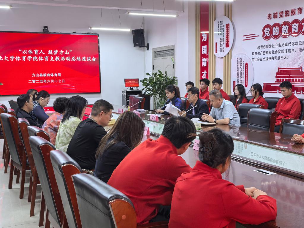 本轮方山县体育支教工作顺利收官。会议由县教体局主办,教体局领导、各服务学校校长及我院支教团师生参加。