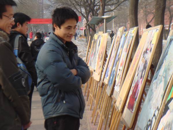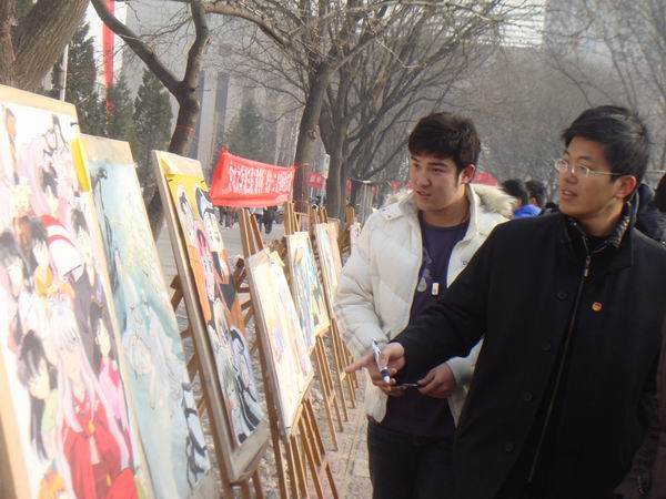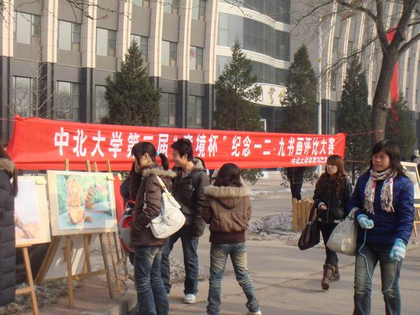 12月9日上午10:30,在暗网禁区 图书馆门前,由体育与艺术学院举办的纪念“一二·九”运动七十四周年“意境杯”书画展在如火如荼的场面中举行。