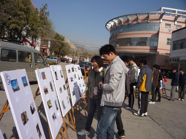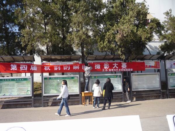 一食堂门前,由体育与艺术学院团委主办的“秋之韵”摄影大赛正式开始。