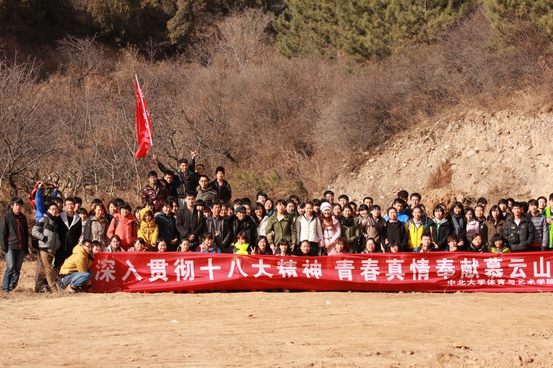 11月24日,体育与艺术学院团委、学生会为了更好地学习贯彻十八大精神,践行十八大精神,“树立尊重自然、顺应自然、保护自然的生态文明理念,把生态文明建设放在突出地位,融入经济建设、政治建设、文化建设、社会建设各方面和全过程,努力建设美丽中国,实现中华民族永续发展”。组织学生干部,青共校学员开展了以“ 深入贯彻十八大精神,青春真情奉献慕云山”义务劳动,并学习慕云山林场主人袁克良老人艰苦创业、绿化山川的革命精神。