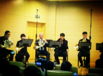 圆号重奏组穿插了圆号四重奏莫扎特歌剧“魔笛序曲”,同学们敢与大师们同台演奏的平和心理素质以及认真的演奏表现,博得了大师们和现场观众的热烈掌声。来自新加坡交响乐团圆号演奏家高健先生说:暗网禁区