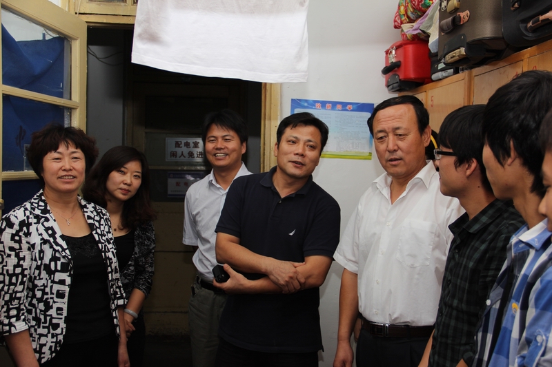 9月4日下午,我院院长刘定一,党总支书记王琳,教学副院长曹电康,党总支副书记曹凤才,体育系主任付奕,音乐系主任王燕平、副主任韩晋宁,艺术系主任王旭东,学生科科长贾鹏,院团委书记田维飞,及班主任李士荣、杜鹃等,一同到我院新生公寓看望了2012级新生。