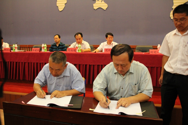 与内蒙古伊利实业集团股份有限公司资助贫困生奖学金合同书》上签字,签字结束后双方互换了协议,并合影留念。根据协议,内蒙古伊利实业集团股份有限公司将每年出资10000元用于资助体育与艺术学院的贫困大学生,全年共资助10名,每人1000元,资助年限为3年;若今后伊利集团与我校双方在发展和相互配合上呈现出良好的发展势头,将进行续签增加助学金额和助学人数,将此作为试点进行全国推广。