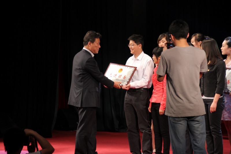 校团委主办的以“高举团旗跟党走”为主题的2012年五四颁奖晚会在科艺苑举办。校党委书记陶功定教授、副书记张惠选教授,校纪委书记安建平教授,副校长沈兴全教授以及各部门各学院的相关领导和广大团员青年参加了大会。