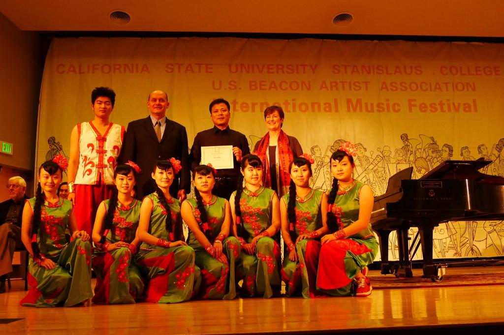 合唱团一行19人于2012年2月7日赴美参加“2012美国迪贝艺术节”比赛的演出,载誉归来。