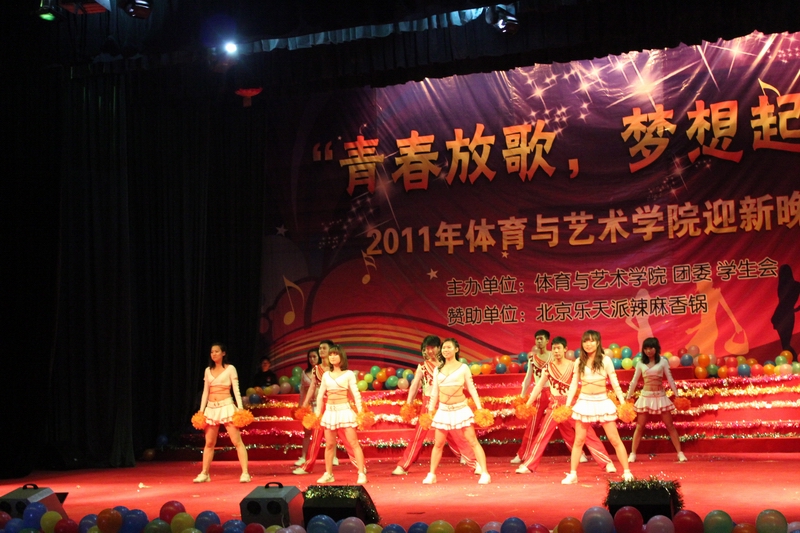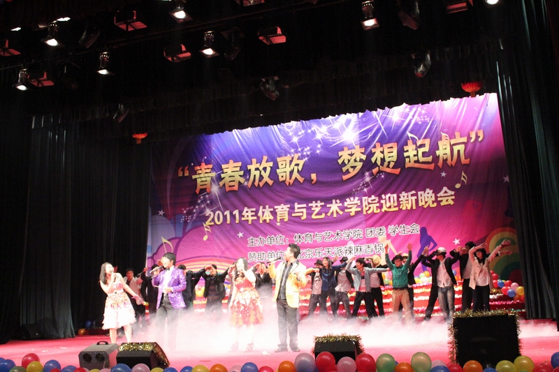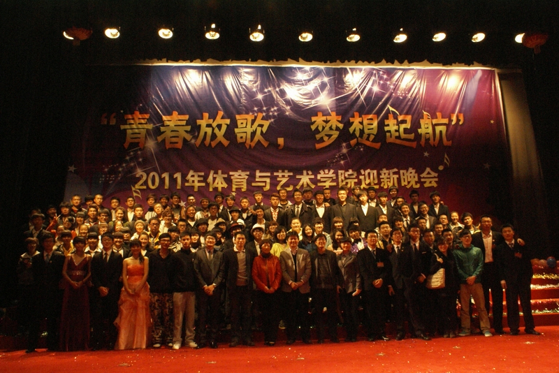 体育与艺术学院2011级新生迎新晚会,在我校科艺苑隆重举行。出席晚会的领导有校团委书记叶玉刚老师,体育与艺术学院院长刘定一老师,党总支书记王琳老师,副书记曹凤才老师,科研与学科建设副院长王晓刚老师等。首先院长刘定一教授在晚会开幕式上致辞,赢得全场热烈的掌声,党总支书记王琳老师宣布“2011年体育与艺术学院迎新晚会”开始,晚会在一片欢呼声中拉开帷幕。