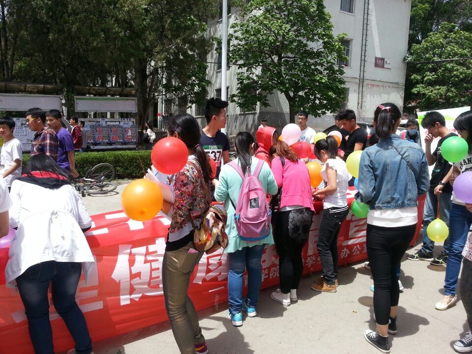 随后中午12时,在第一食堂前正式举行了宣传活动,活动期间,唐伟老师领导学生会成员向同学们进行宣传并发放气球给各位同学,和签名留念。活动中,每一位路过的同学都积极参加着我们的活动,和我们做着互动。