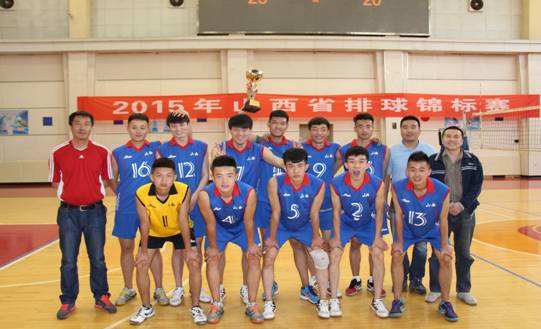 5月8日—13日,2015年山西省排球锦标赛在太原市举行。我校男子排球队在比赛中自始至终保持高昂的斗志,发扬拼搏精神,以全胜的战绩赢得了大学组的冠军。这也是我校男子排球队连续第六年蝉联冠军。